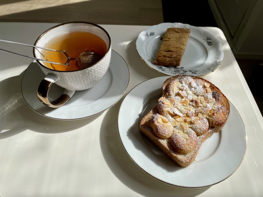 Toinen leipomus toi yhteen ranskalaisia ja pohjoismaisia vaikutteita. ”Bostock” on suosittu ranskalainen leipomus, joka muistuttaa etäisesti köyhiä ritareita, yhdistettynä mantelicroissant-vaikutteilla. Ilse oli lisännyt mukaan kanelia tuomaan perinteikästä pullan makua. Tämä oli hieno uusi tuttavuus, jota suosittelen lämpimästi! Leivässä oli juuri sopiva kosteus ja pehmeys, ja päällyksen mantelimassassa oli vain häivähdys karvasmantelin aromia. Minä en yleensä siitä pidä, koska se tahtoo jyrätä kaiken, mutta tässä sen rooli oli hyvin hillitty, muita makuja täydentävä.