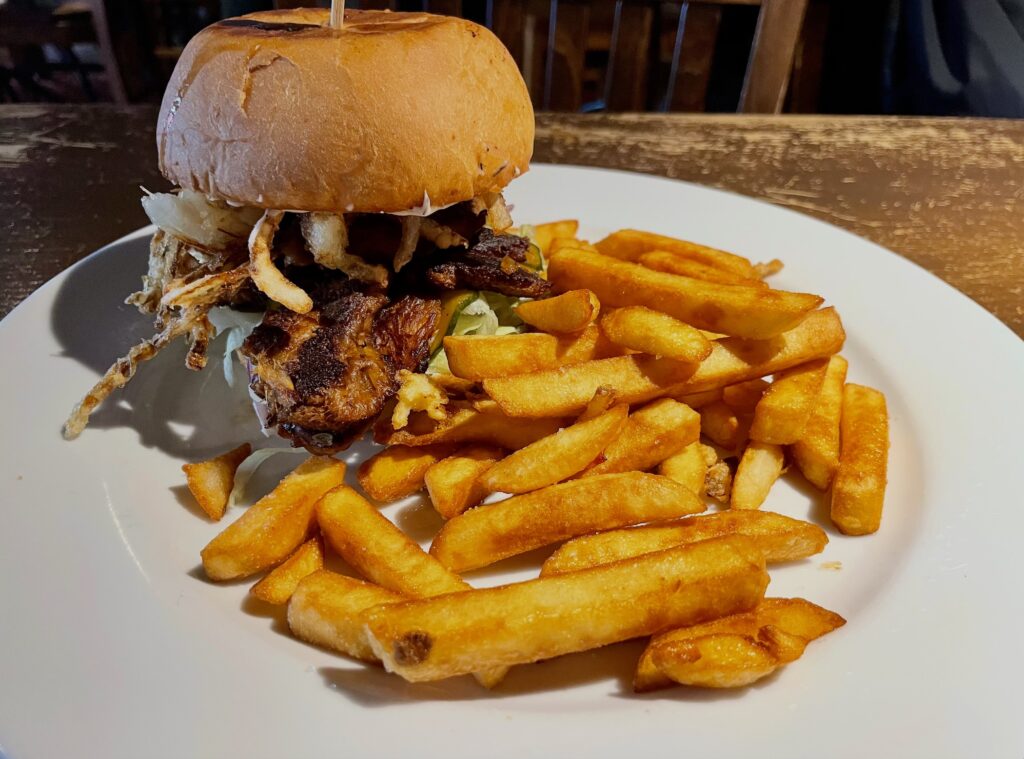 "Muhevien paistettujen sieniviipaleiden lisäksi välissä oli ihanaa rapsakkaa uppopaistettua sipulia, seesami-soijakurkkuja sekä timjamimajoneesia. Yhdistelmä oli erittäin onnistunut."