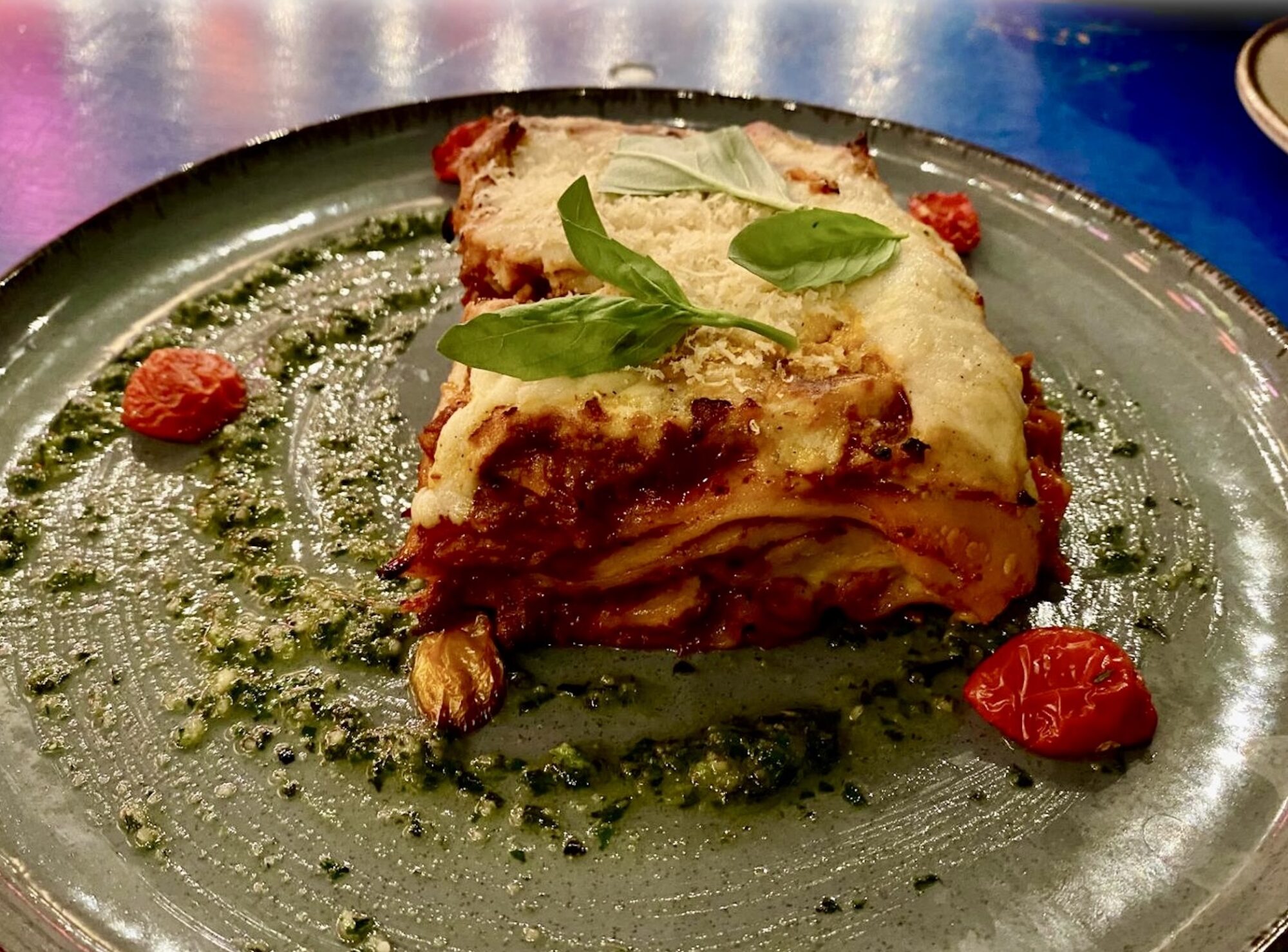 Pääruoaksi jaoimme talon aivan mahtavan lasagnen. Tavallaan se oli ihan tuttua, kotiruokamaista, sillä juuri tämän tyylistä teemme itsekin. Mutta vegaaninen juusto oli todella erinomaista, harvinaisen hyvää, enkä minä ole näin hyvää lasagnea ravintolassa koskaan saanut. Tai no, Comon il Lughinon oli loistavaa mutta tyyliltään niin erilaista, että näitä olisi hankala verrata.